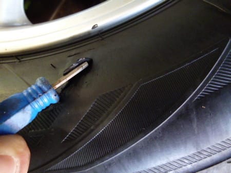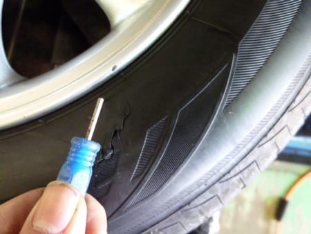 今回の作業は、タイヤの横をぶつけてしまって切れてしまったお車のタイヤ1本交換作業です!