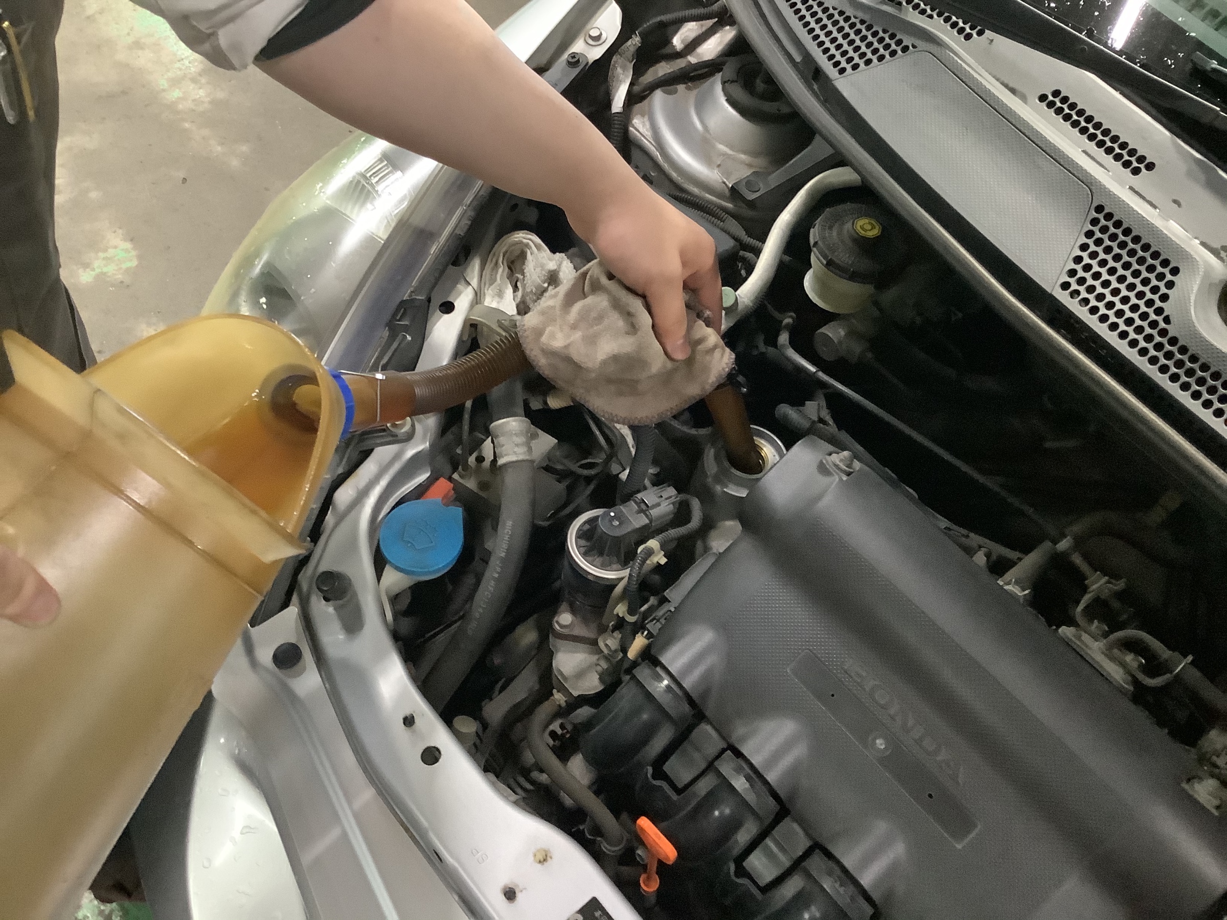 さらにエンジンオイル交換の際には、使用していた古いエンジンオイルを抜いてから、洗浄能力の高いフラッシングオイルを入れ一定時間アイドリングすることで、エンジン内に溜まった汚れを落とす「エンジンフラッシング」もご用意しています(エンジンフラッシングは、エンジンオイルとオイルエレメントの交換が必要になります)。