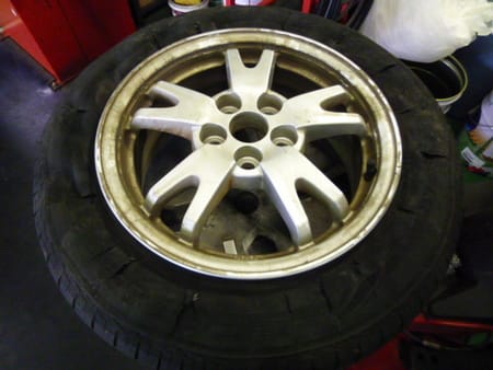タイヤがパンクしたまま無理やり走ると、このようにズタボロになってしまいます・・・