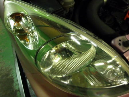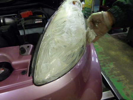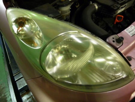 黄色く変色したヘッドライトを・・・(一枚目)
