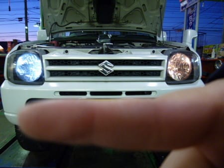 キレイにピッカピカにクリーニングしてから仕上げにLEDポジションバルブに交換!4枚目、左の白いのがLEDで右が純正です!