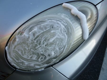 マーチのヘッドライトクリーニング!