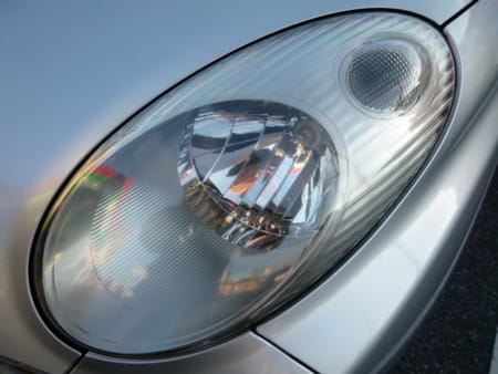 今回のマーチは右ライトが新品で左の既存ライトがくすんで見えてしまうために、左のライトをクリーニングでリフレッシュ!
