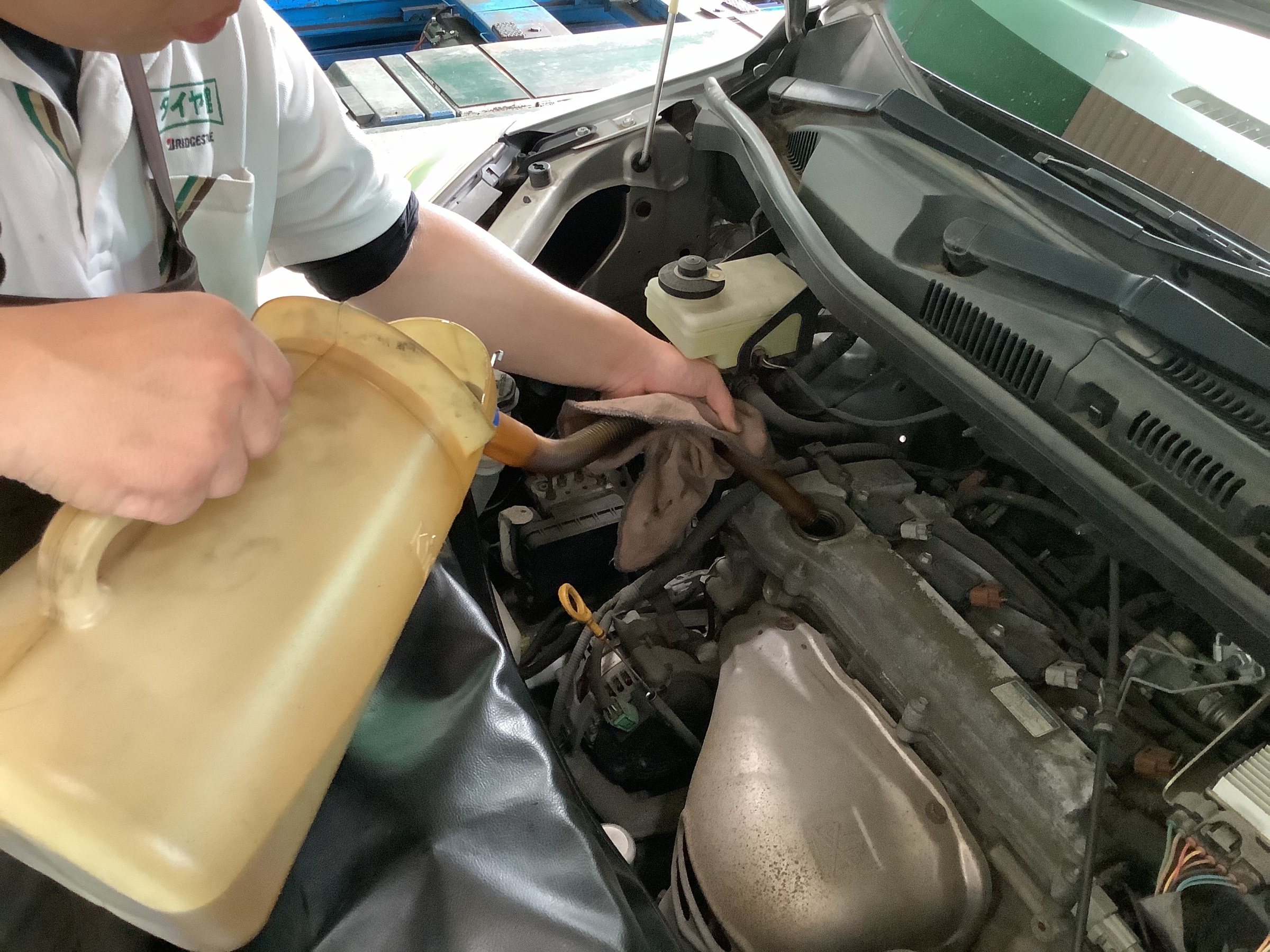 規定量のエンジンオイルを注入します。