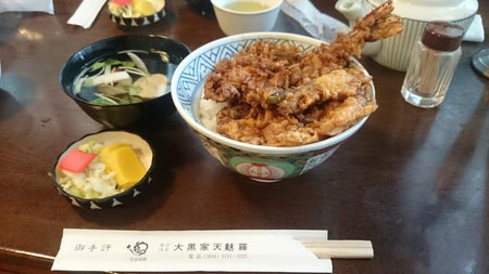 ここでお昼ご飯を食べたのですが、お昼ご飯は大黒家天麩羅さんの海老天丼をいただきました!ヾ(*°∀°*)ノこれがまたタレが濃くてうまぁーーーい!!雨の中、列に並んで食べたかいがありましたわ!!