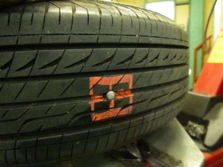 なんとタイヤのサイド面にもクギが刺さっているのをお客様が発見・・・