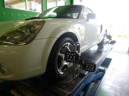 激しいトーアウトでフロントタイヤの内減りが激しかったために、アライメントもキッチリ調整しました♪