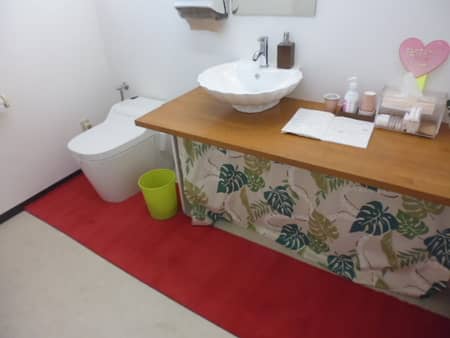 トイレの周りに引いてあるレッドカーペット