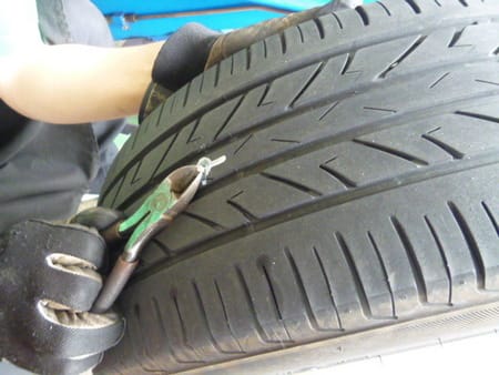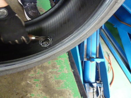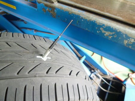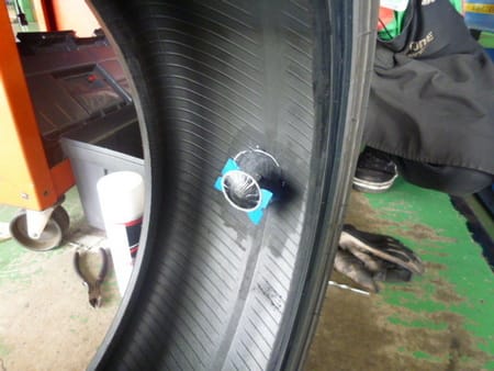 クギを抜いたらタイヤホイールをバラし、中の損傷が無ければ内側からパッチを貼って修理します!
