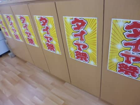 お店の中には、タイヤ祭の紙が沢山貼ってあります(●*>凵<p喜q)*゜・。+゜