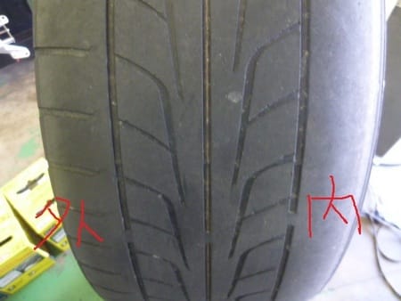 今回タイヤ交換を行ったマークXですが、タイヤの写真を見ていただくと一目瞭然なのですが内側の溝がサッパリ消えています・・・!