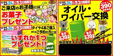 3、各日先着39台限定でオイル、ワイパーを感謝価格でご案内