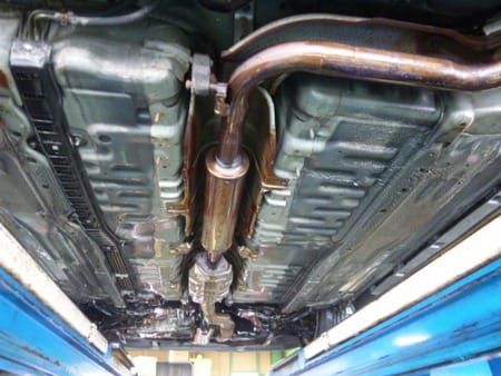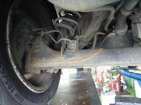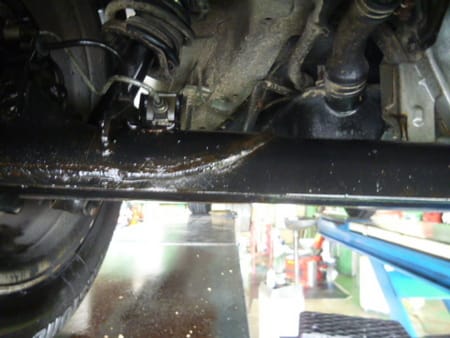 本日タイヤ交換を行ったP11プリメーラですが、車の下に潜ってみると全体的に結構なサビが・・・!(写真一枚目)