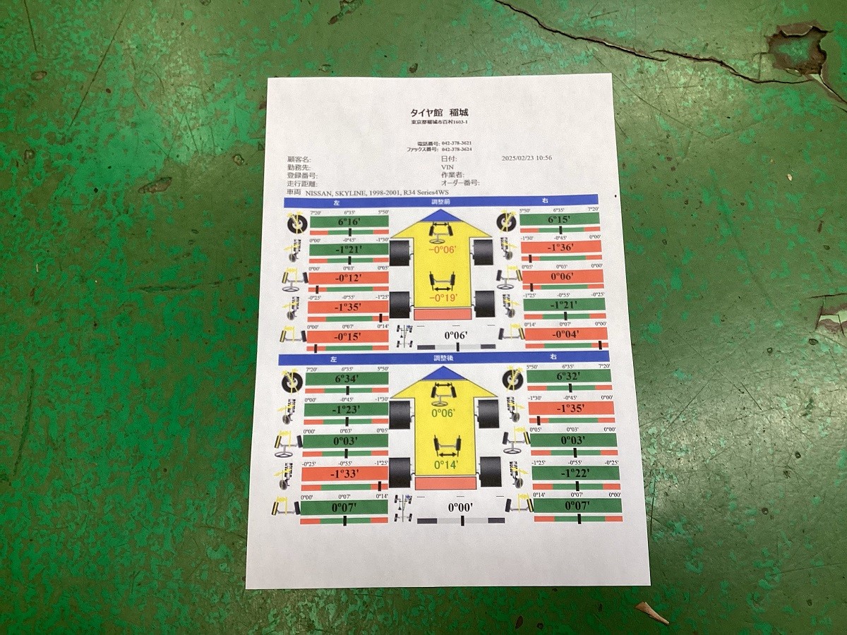 タイヤ交換が済んだら、続いてアライメント調整をします!!