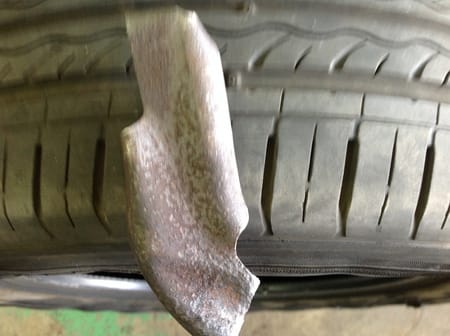 点検後、他の3本も残ミゾが少なかったので4本交換プラスアライメント調整となりました。
