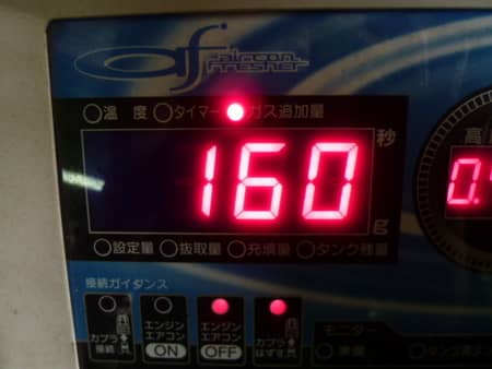 クリーニングをして不足分のガスを160g足すと・・・