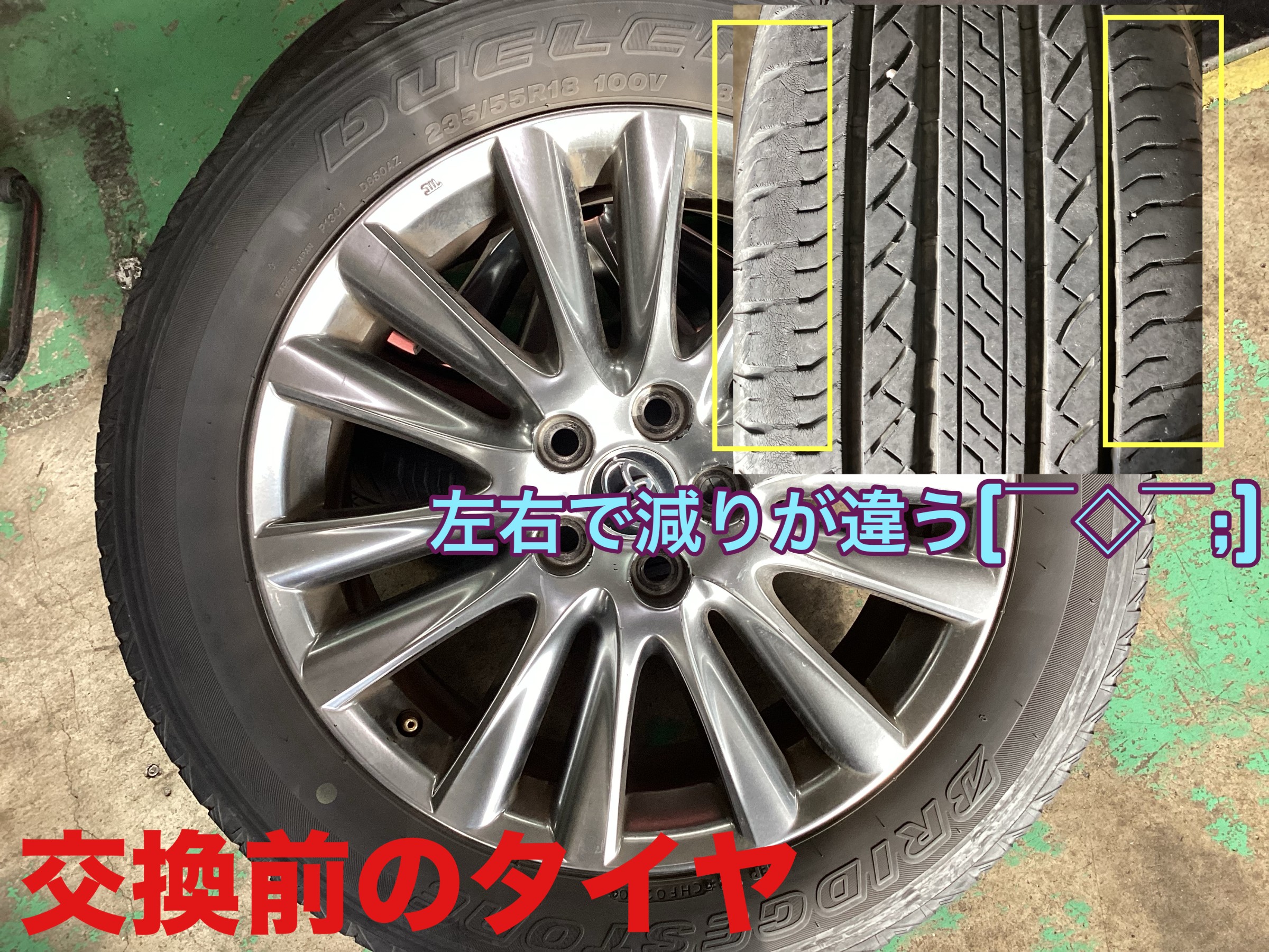まずは、交換前のタイヤの状態です。