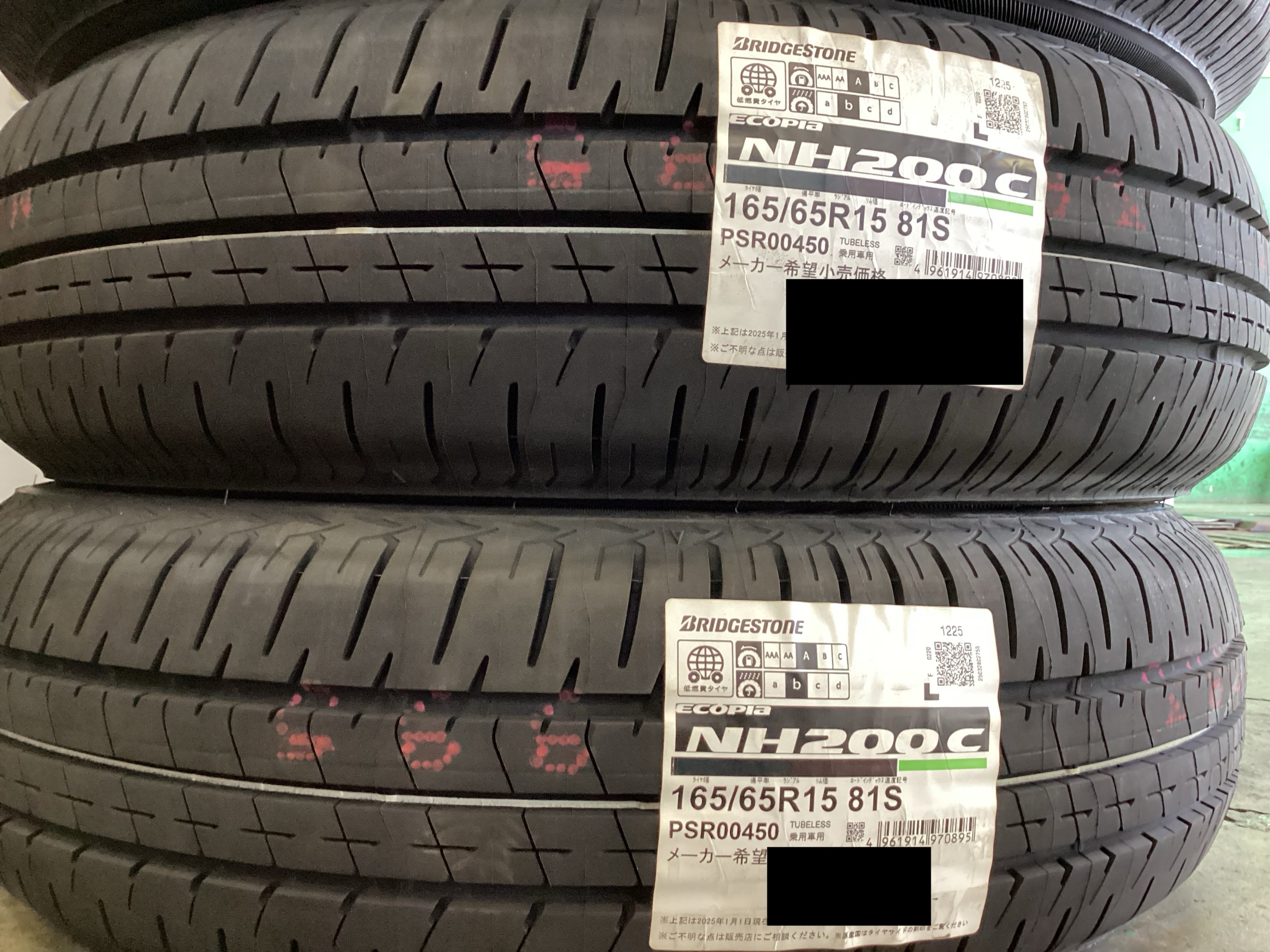 お客様に点検結果をご説明し、今回は溝とひび割れのバランスに優れた**ブリヂストン「NH200C」**をご提案させていただきました。