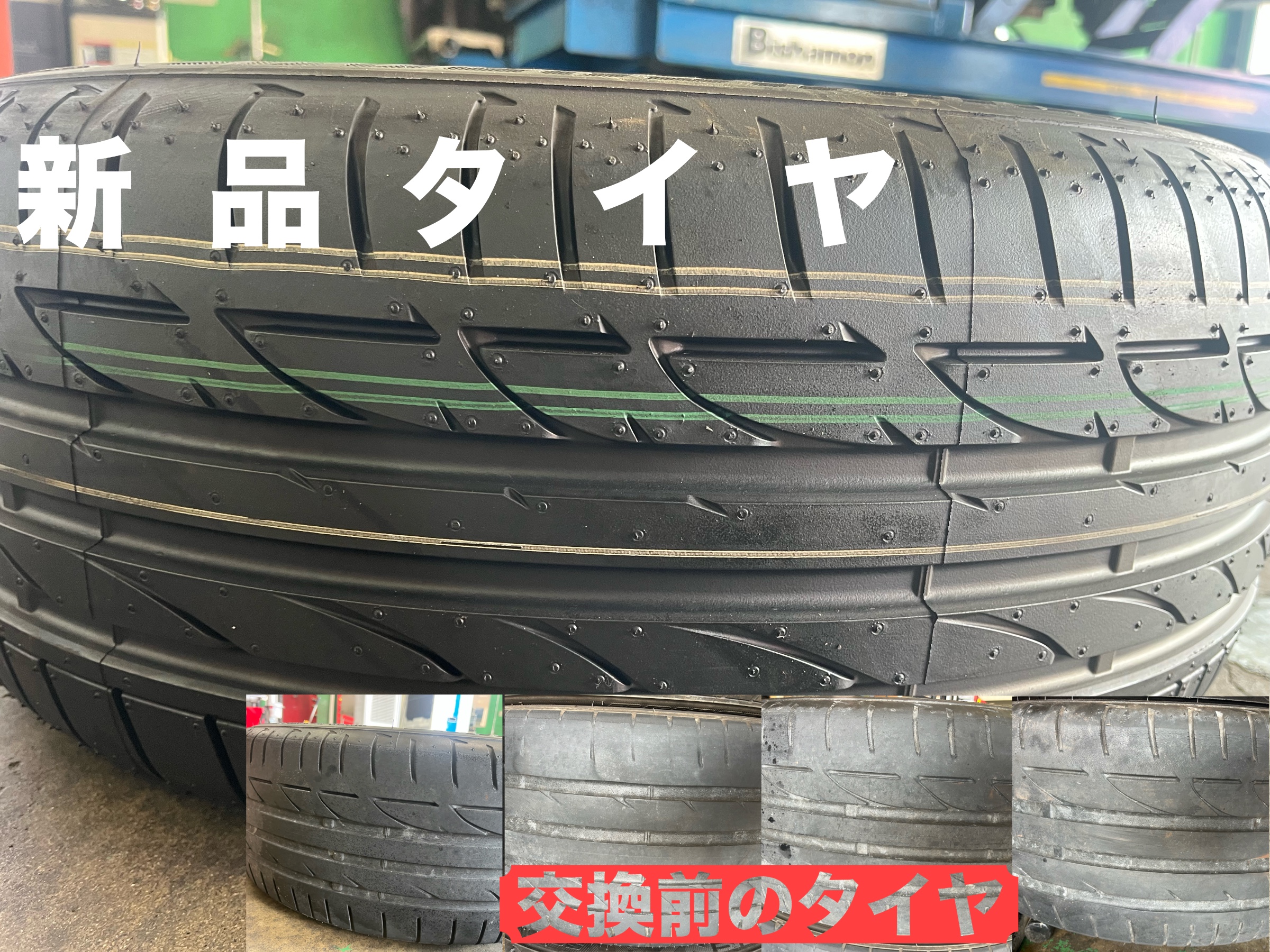 【整備】 タイヤ交換後、アライメントの測定と調整を実施。これにより、タイヤの偏摩耗を防ぎ、直進安定性やコーナリング性能が向上。振動も解消され、快適な走行を取り戻しました。