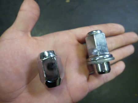 写真1枚目のように純正ナットと社外ホイールナットでは形状が違うことがあるので、そうなると交換作業ができません!