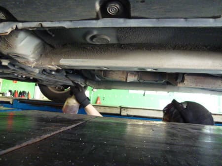 本日は、軽く錆の浮いていたフィールダーのマフラーに防錆コーティングを行ないました!
