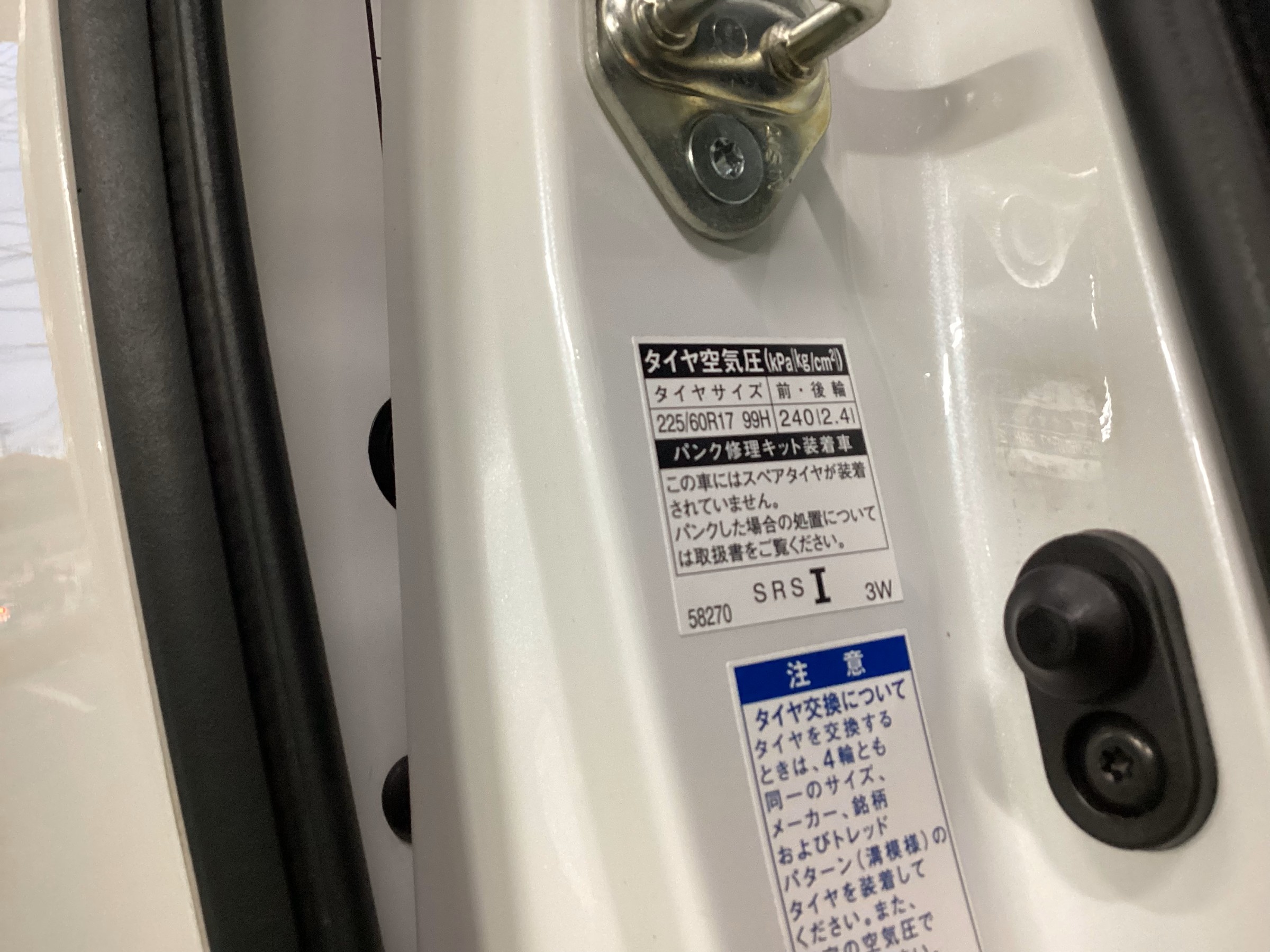 ここに 純正タイヤサイズごとの指定空気圧シール が貼ってあります。