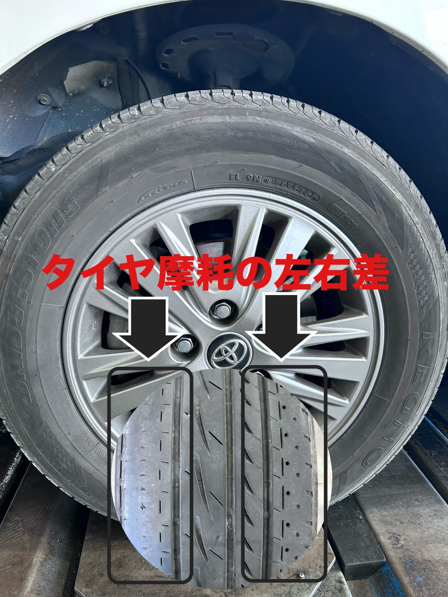 #アライメント調整#偏摩耗#タイヤ交換専門店#ブリヂストンタイヤ