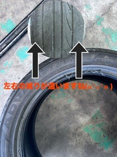 アップした写真の通り、左右の溝の残り具合が大きく違う状態でした。