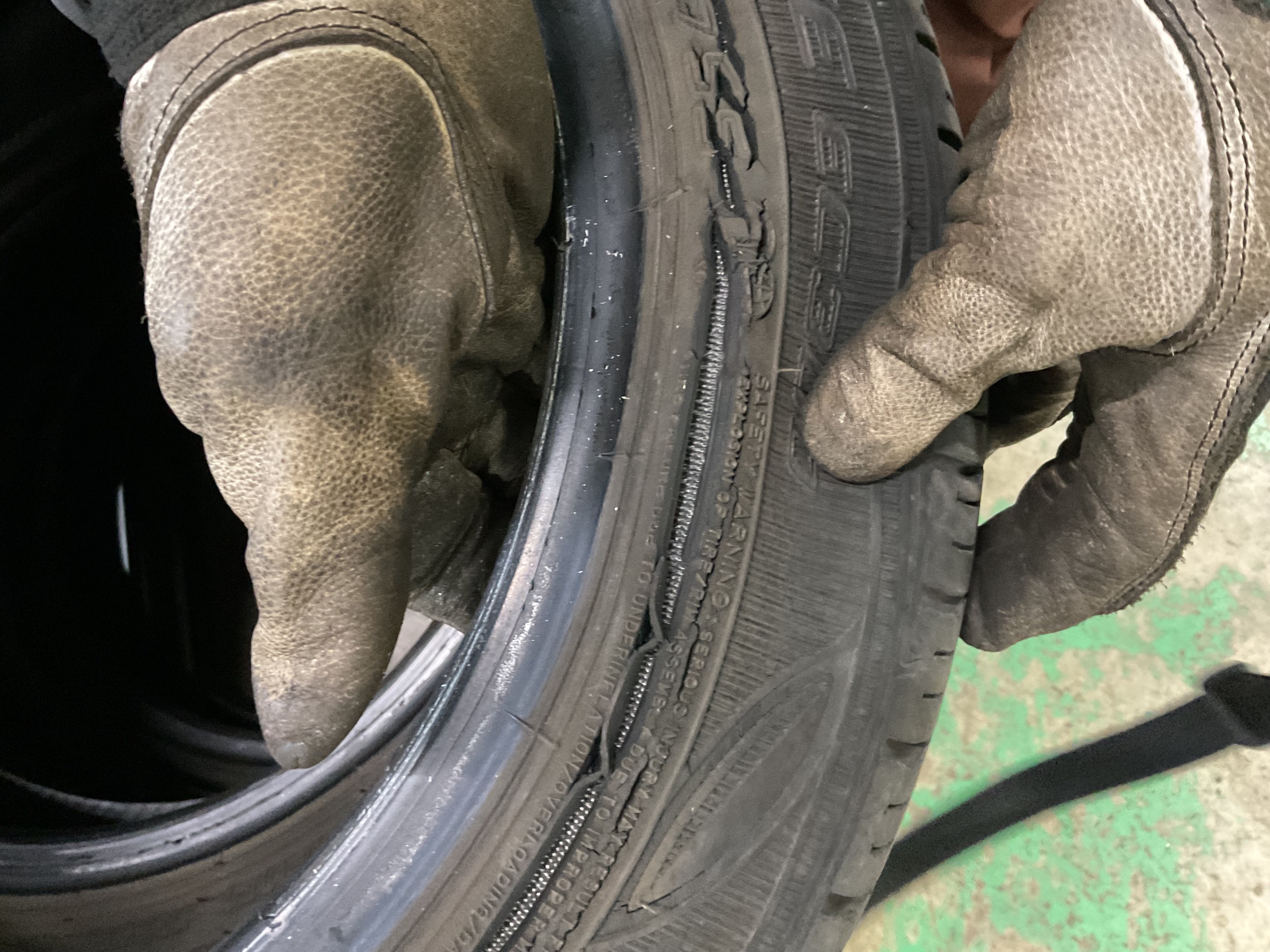 こちらのタイヤも空気圧不足が長期間続いたまま使用していたためヒビがかなり深くまで進行してしまっています