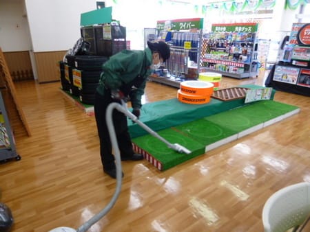 お掃除が大得意のアルバイトの吉岡さんが、既存のコーナーを掃除しながらせっせとテキパキ解体していっています!
