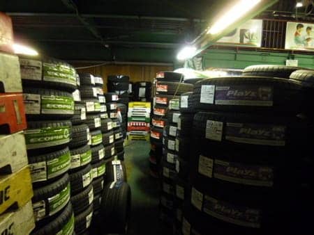 1階にたくさん並んでいたタイヤを、全て人力で2階に上げました!