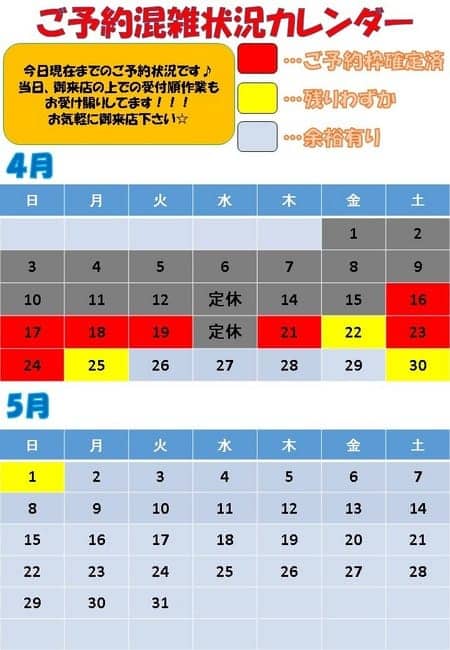 履き替えの予約受付を実施しております、まだ空きもございますのでお電話での