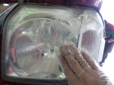 真っ白やまっ黄色に濁ったヘッドライトは見た目もライトの明るさも低下します!