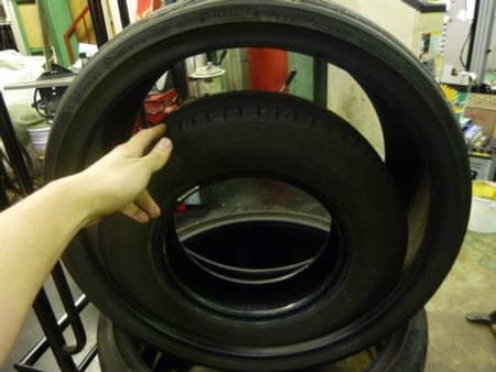 3枚目のように、軽トラのタイヤがすっぽりと中に入ります(笑)