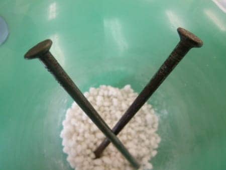 この中には【防錆コートを施した鉄クギ】【防錆コートを施していない鉄クギ】【塩化カルシウム】が入っています!