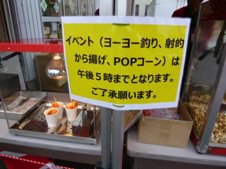 ※誠に勝手ながら、ヨーヨー釣り・射的・からあげ・POPコーンのご提供は午後五時までとなります。ご了承下さい。