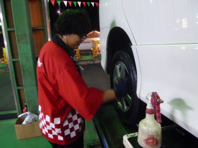 お車のお引渡し前の仕上げ中の手塚店長を激写!
