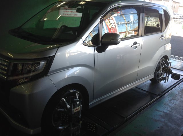 本日、スタッドレスタイヤをお取り付けさせて頂いたお客様のお車(ムーヴ)に、しっかりスタッドレスタイヤの性能を発揮させる為、アライメント測定をさせて頂きました!!