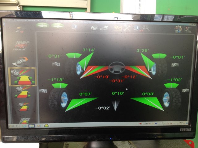 で、タイヤ交換と一緒にタイヤの角度の確認も行いました!