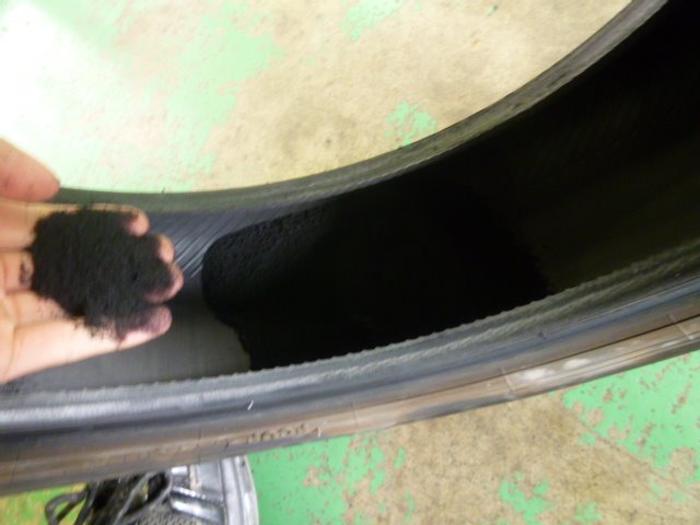 タイヤとホイールを分解するとタイヤの内側がボロボロに・・・!