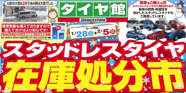 スタッドレスタイヤ在庫処分市、本日が最終日です!