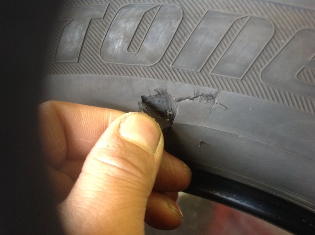 後ろのタイヤの側面に傷がある為、まずは点検をさせて頂いてからのタイヤ交換になりました!!