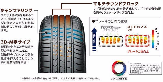 新発売する「ALENZA 001」は、プレミアムSUVのスポーティな運動性能を高次元で引き出すために専用設計されており、オンロードでの高いドライ、ウェット性能に加え、低燃費性能、ライフ性能にも配慮したハイパフォーマンスタイヤとなっています。
