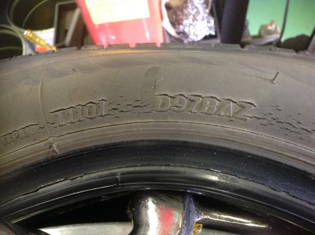 この状態になってくると、柔らかい(新品時の)状態から比べると、性能の差が(特にブレーキの効きに)出てきます。