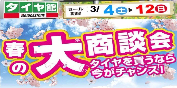春のタイヤ大商談会、明日が最終日です!ヾ(^▽^ヾ)たくさんのご来店をお待ちしております♪