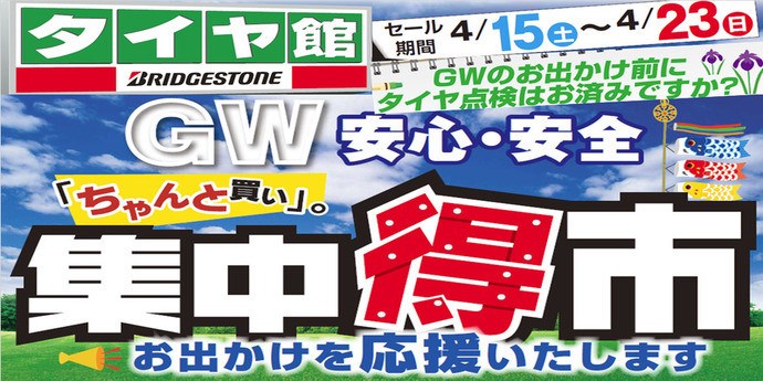 タイヤ館のお得なセールイベント【集中得市】がスタートです!