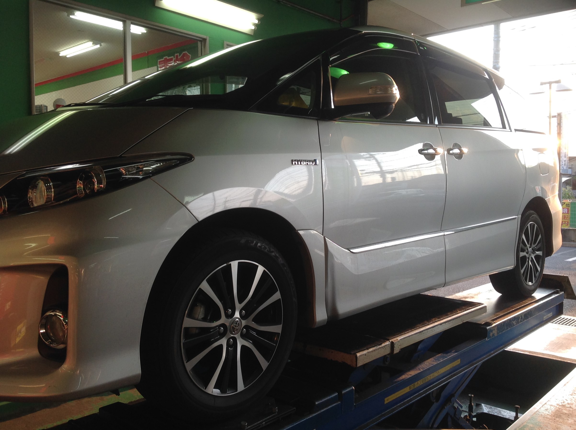 トヨタ「エスティマ AHR20W」のタイヤ交換&アライメント測定・調整