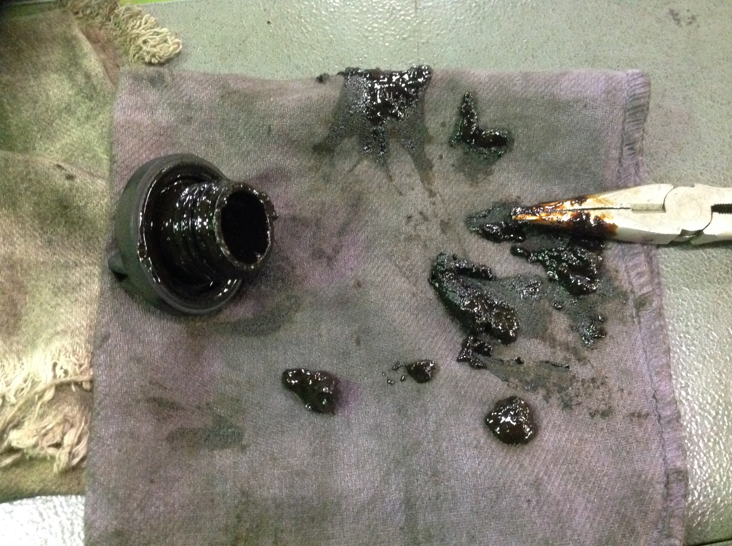 引っこ抜くとヘドロ状になったオイルがベッタリ・・・!