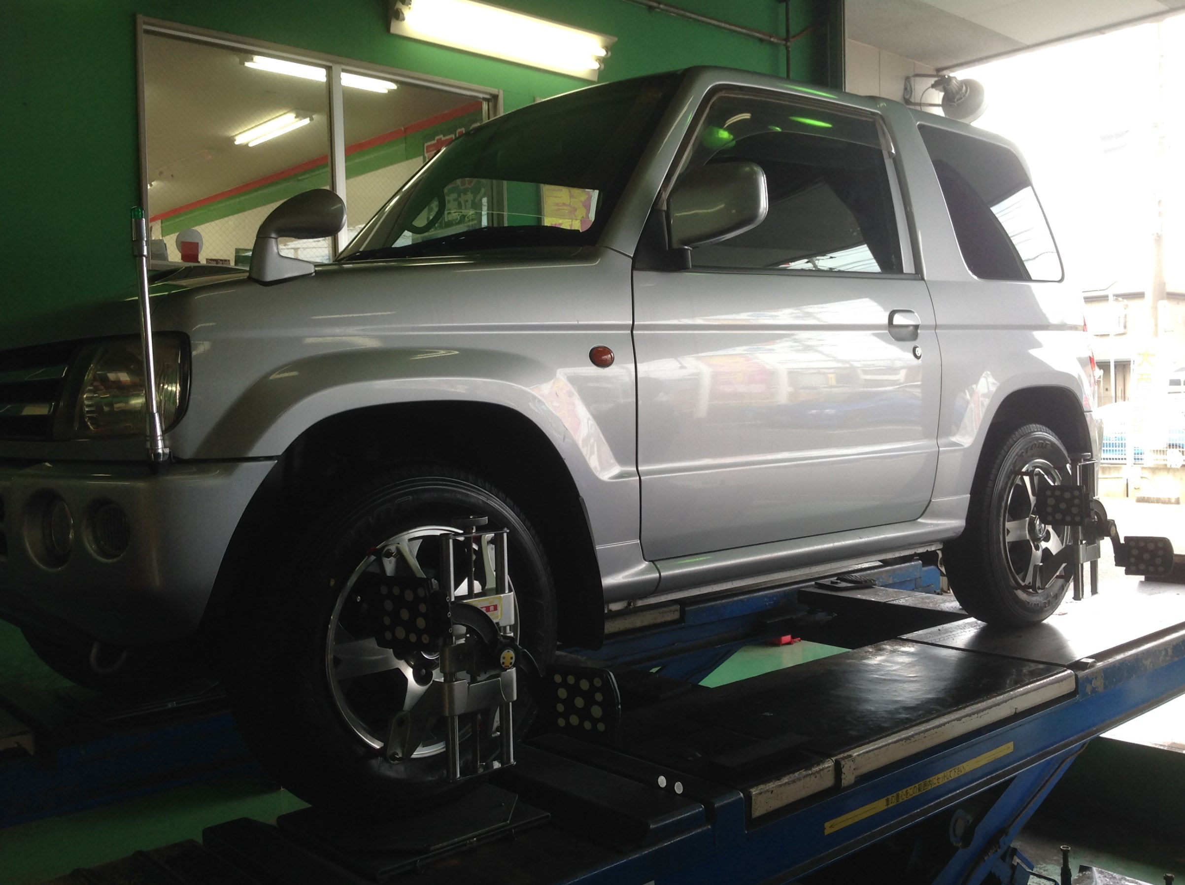 三菱「パジェロ ミニ H58A」のタイヤ交換&アライメント&防錆コーティング!!