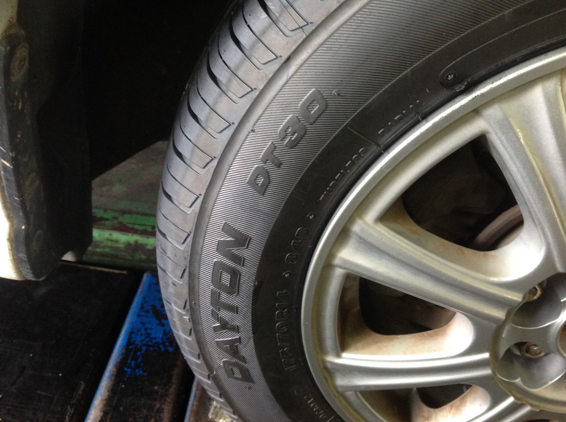 交換したタイヤはブリヂストンの孫会社にあたる、DAYTON製のDT30!サイズは175/70R14!